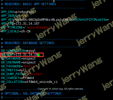 此篇文章的环境,数据库和服务器是安装再同一台服务器上,修改DB_HOST=172.31.14.167(服务器地址)
