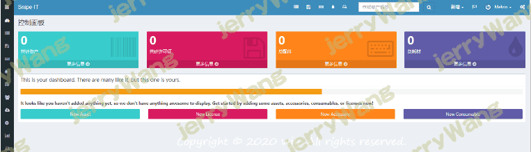 以上步骤已经将snipe-IT系统安装完成,已经能正常的显示为中文版本。